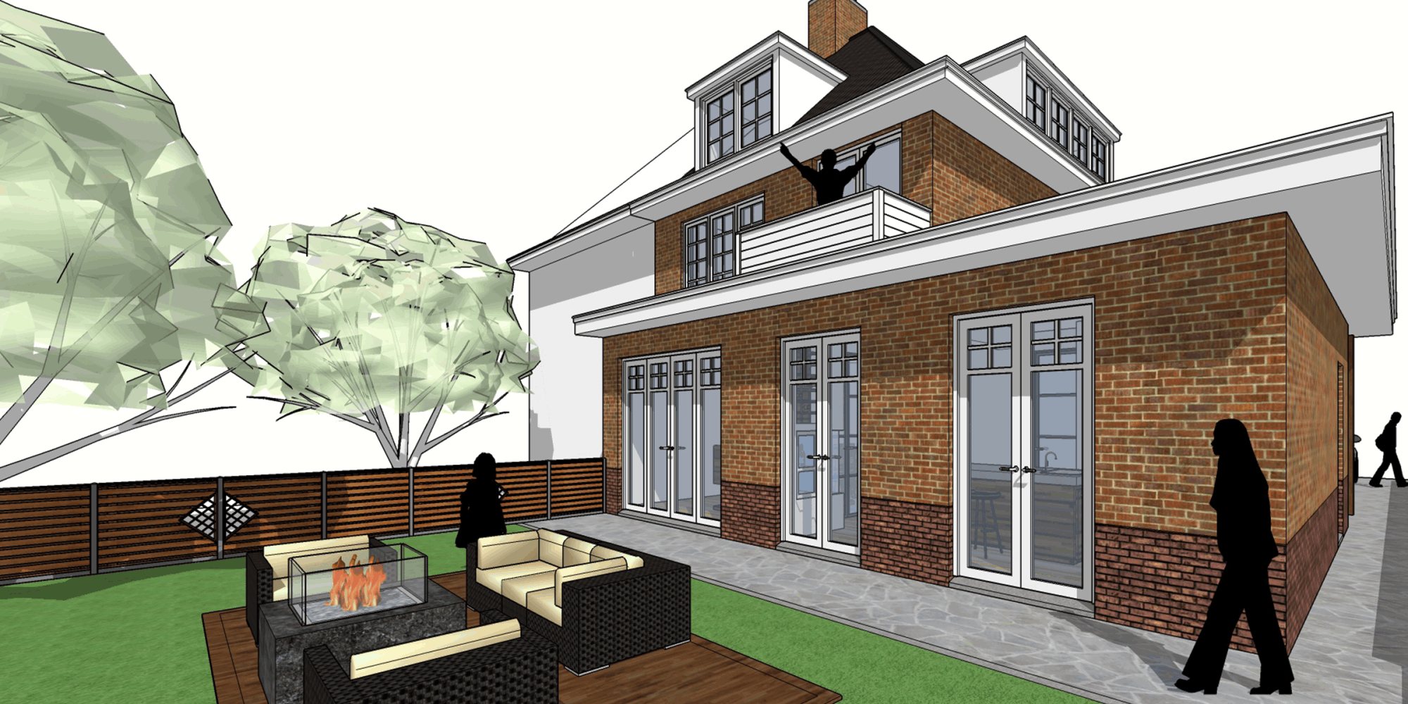 The house at Camphuysenlaan in Heemstede, The Netherlands, which have an extension at the left side , designed in the same style as the house. The biggest change is the kitchen with the storage, with the dining that both have access to the back garden. This extension adds up more quality space and convinience for the daily duties in the house.